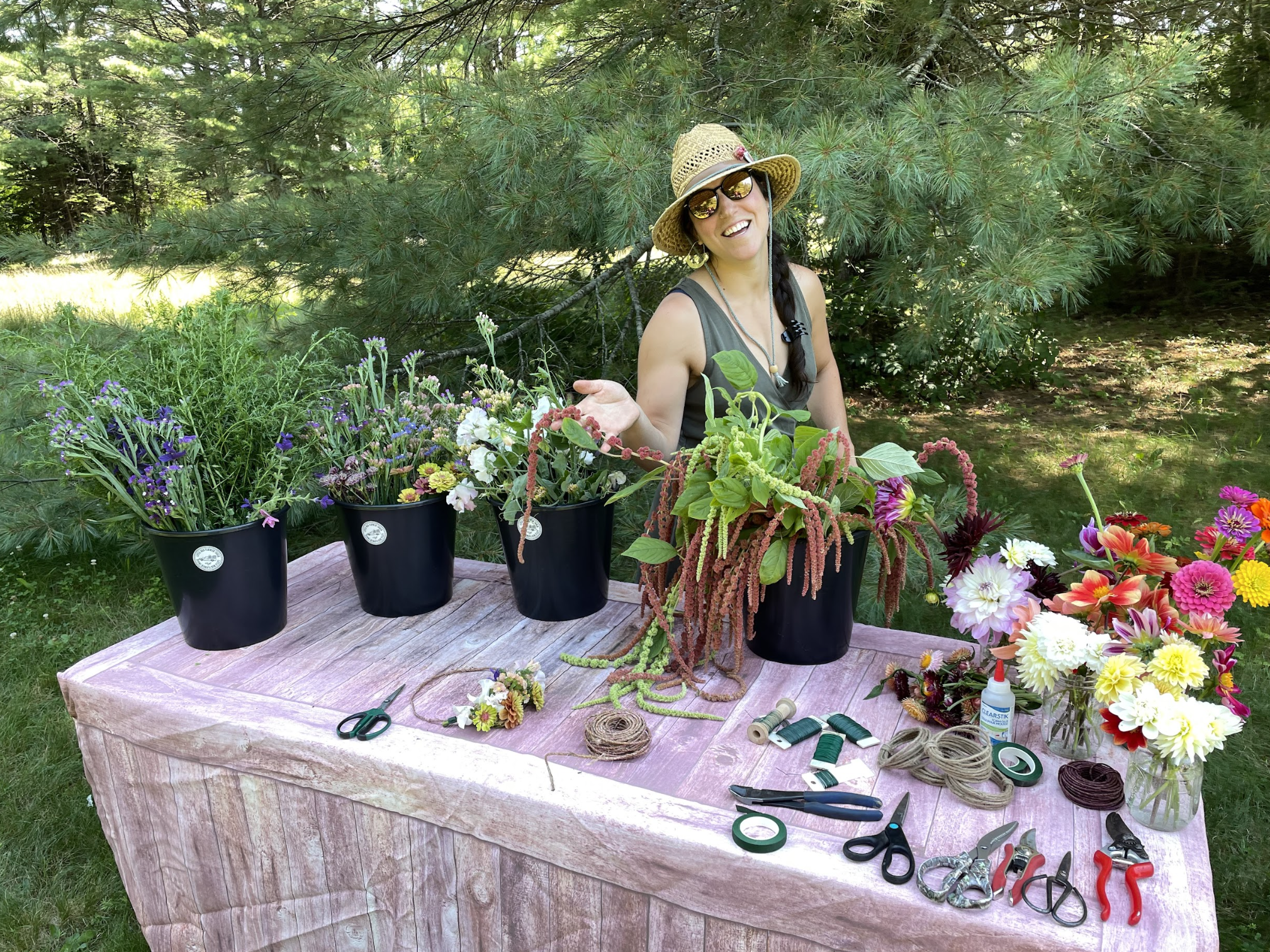We sell wedding flowers through DIY (do it yourself) buckets, picked up at the farm in Harborside